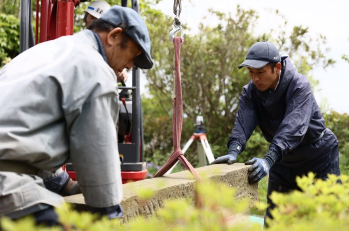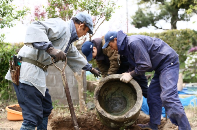 造園は造りだす前の土壌改良(排水改善など)や片付けなど土木系の要素が多いです。掘った土などの運び出しや、扱う材料も重量があるものが殆ど。庭が出来る感動を味わうまで地道な仕事が続きます(暑い・寒い・虫・合羽・重い・汚れる)